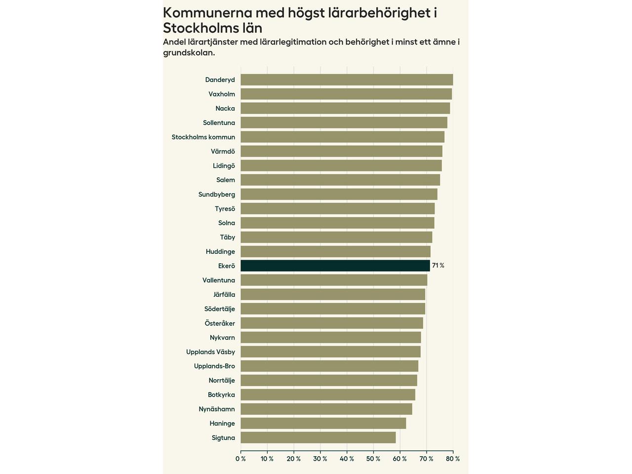Lärarbehörighet i skolorna i Ekerö kommun – från högst till lägst
