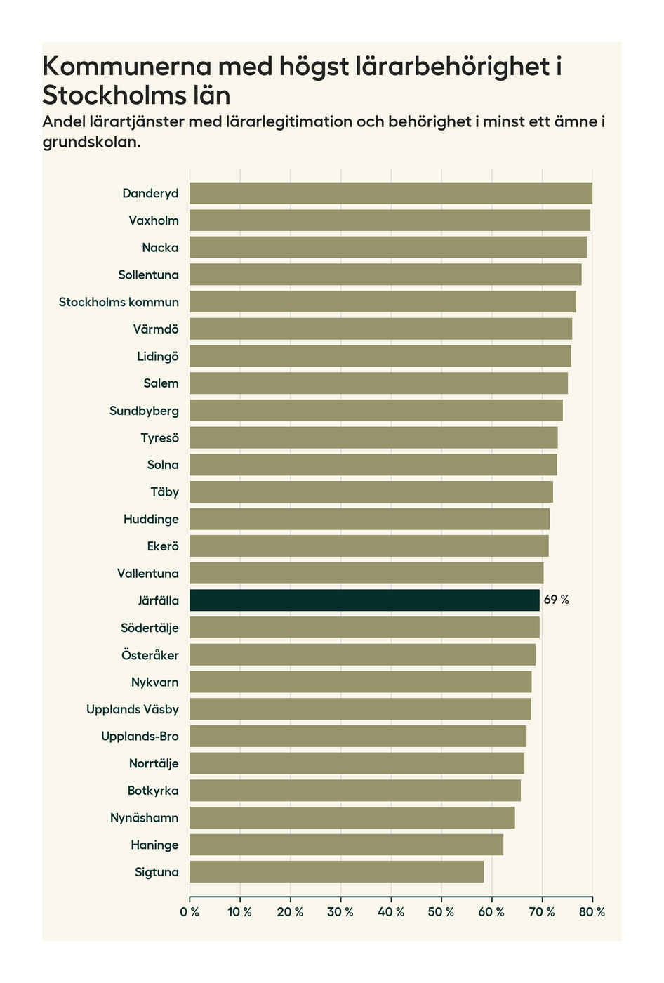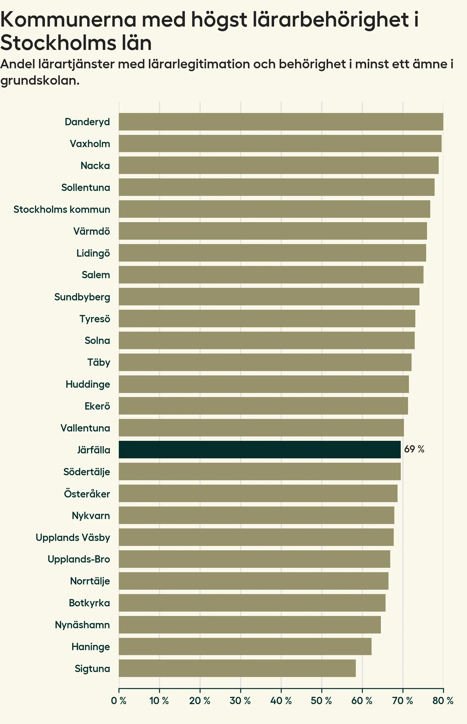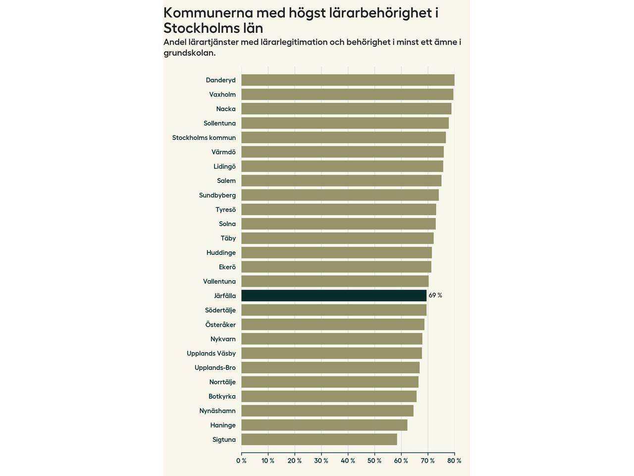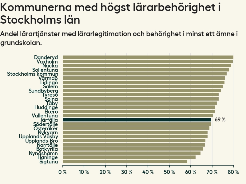 Lärarbehörighet i skolorna i Järfälla kommun – från högst till lägst