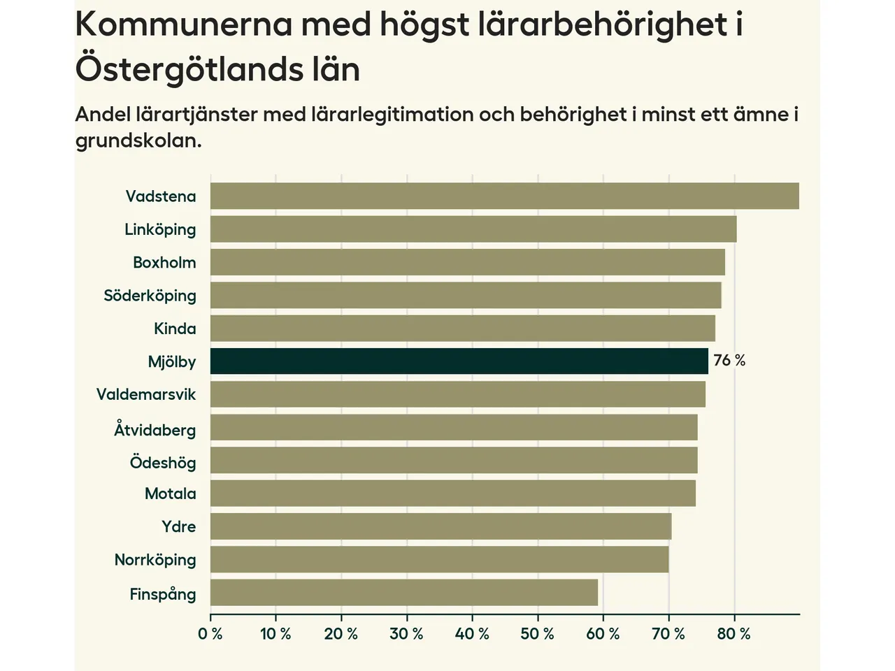 | Mjölby | 76,0 % | 75,6 % | +0,4 ▸ |