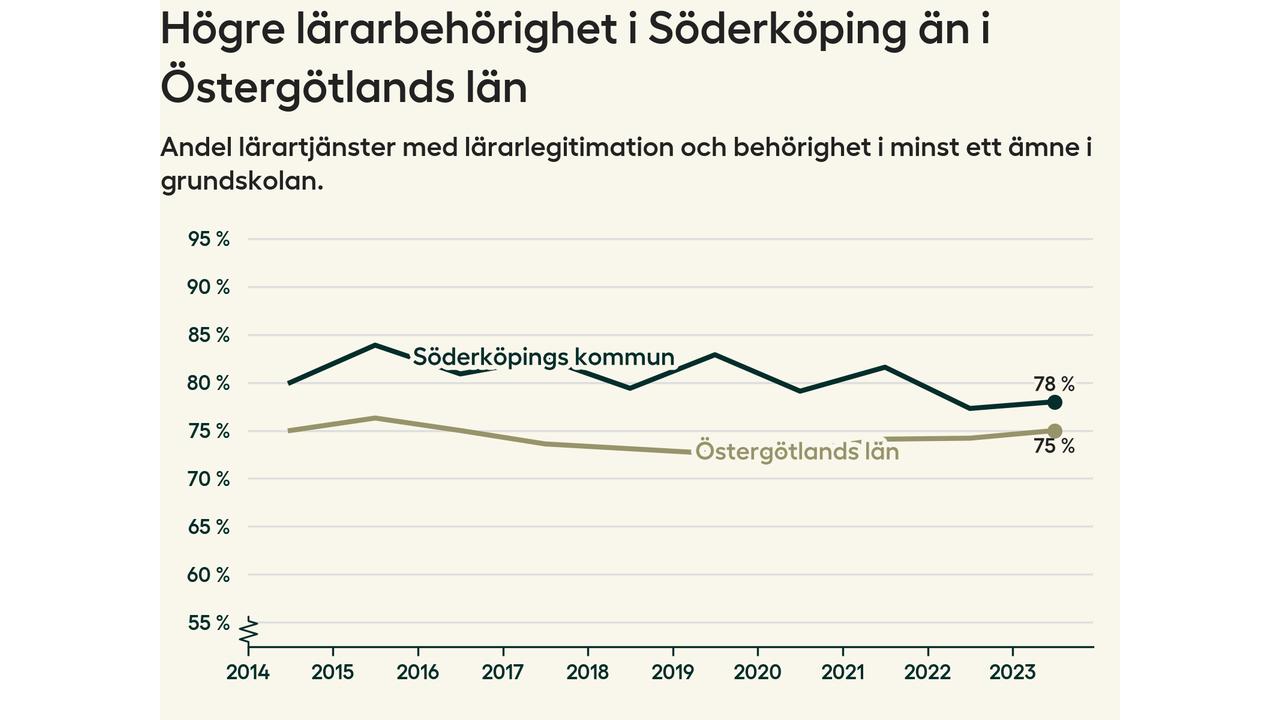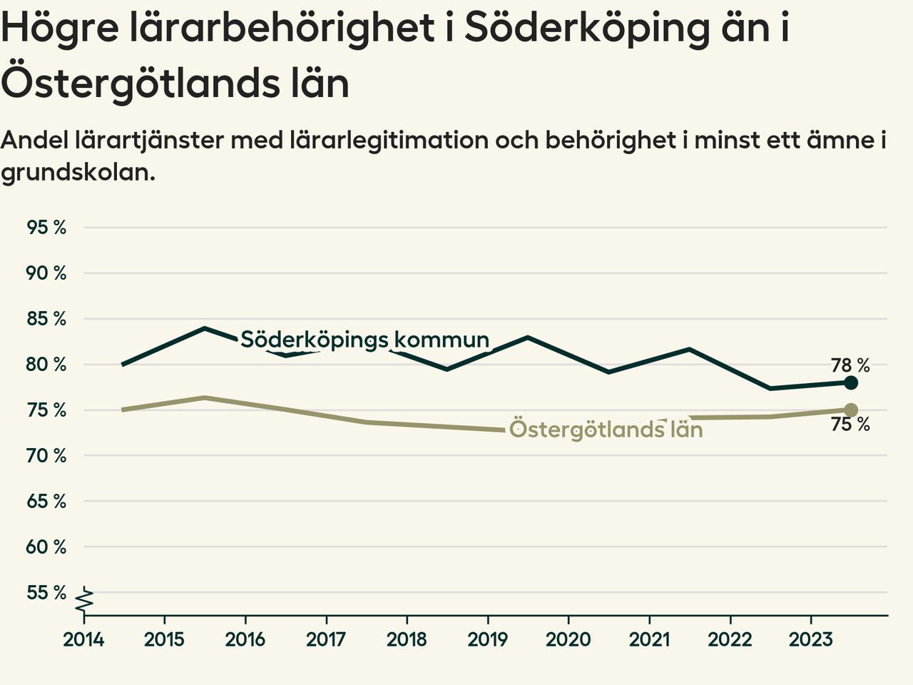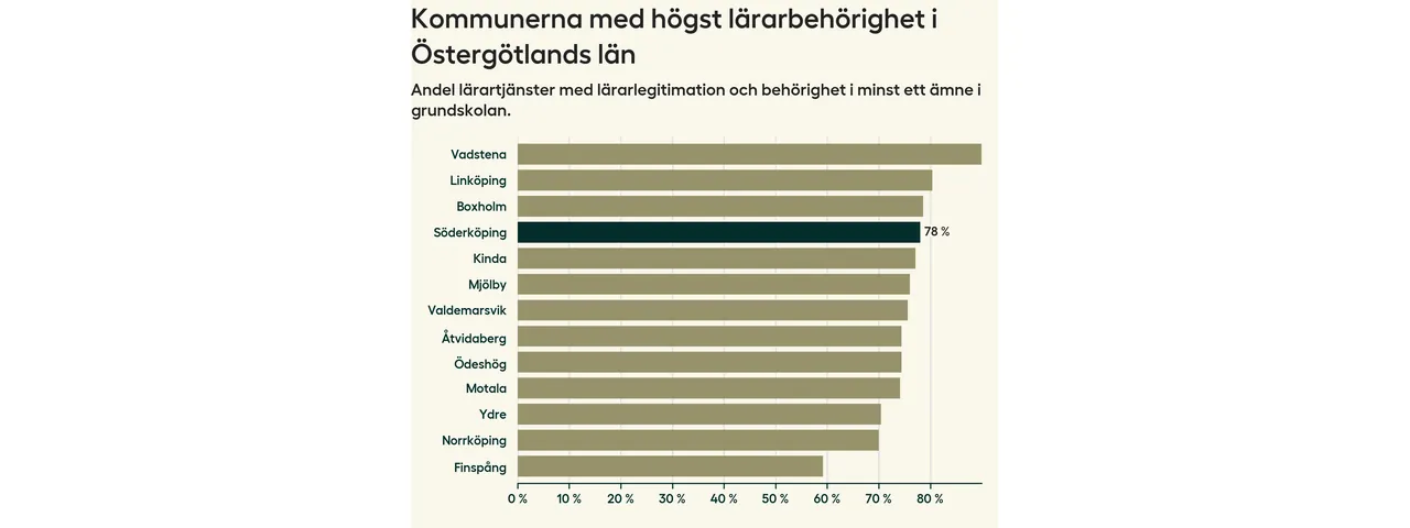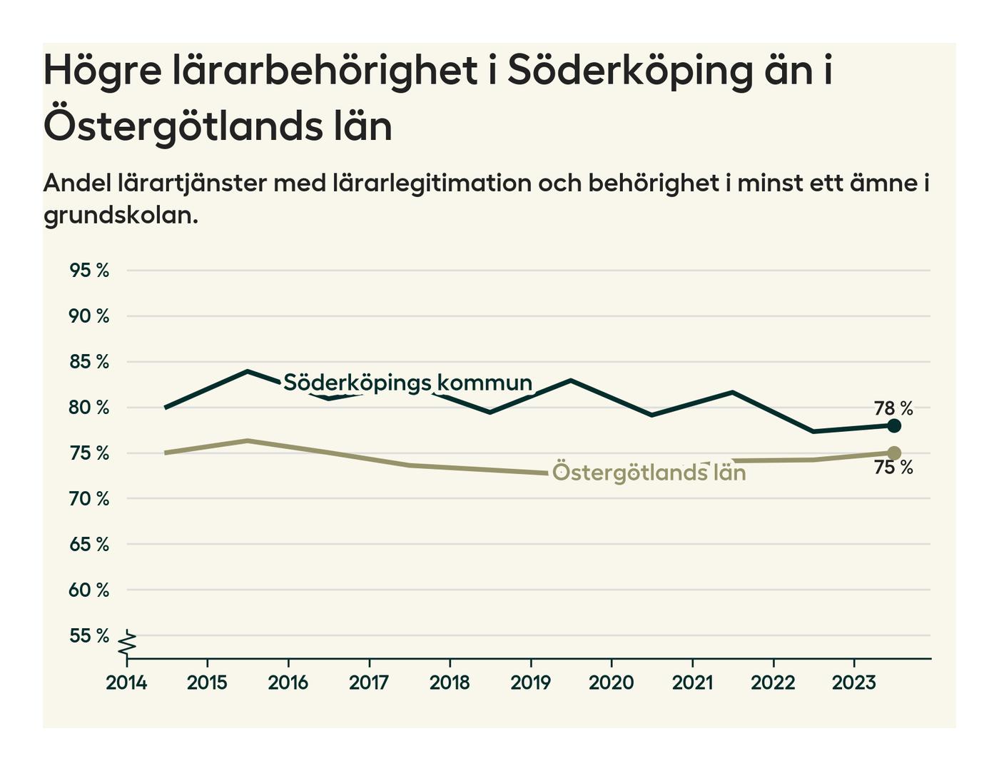 Lärarbehörigheten i Söderköpings kommun ligger kvar på 78 procent, vilket är över snittet för hela landet.
