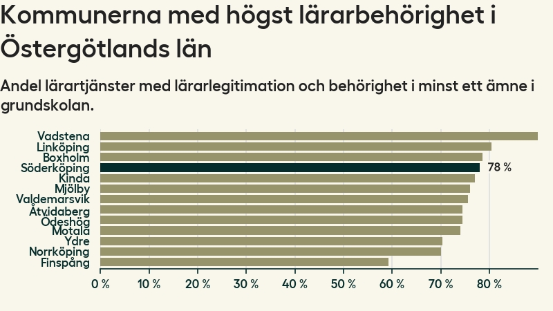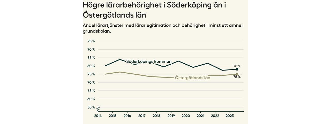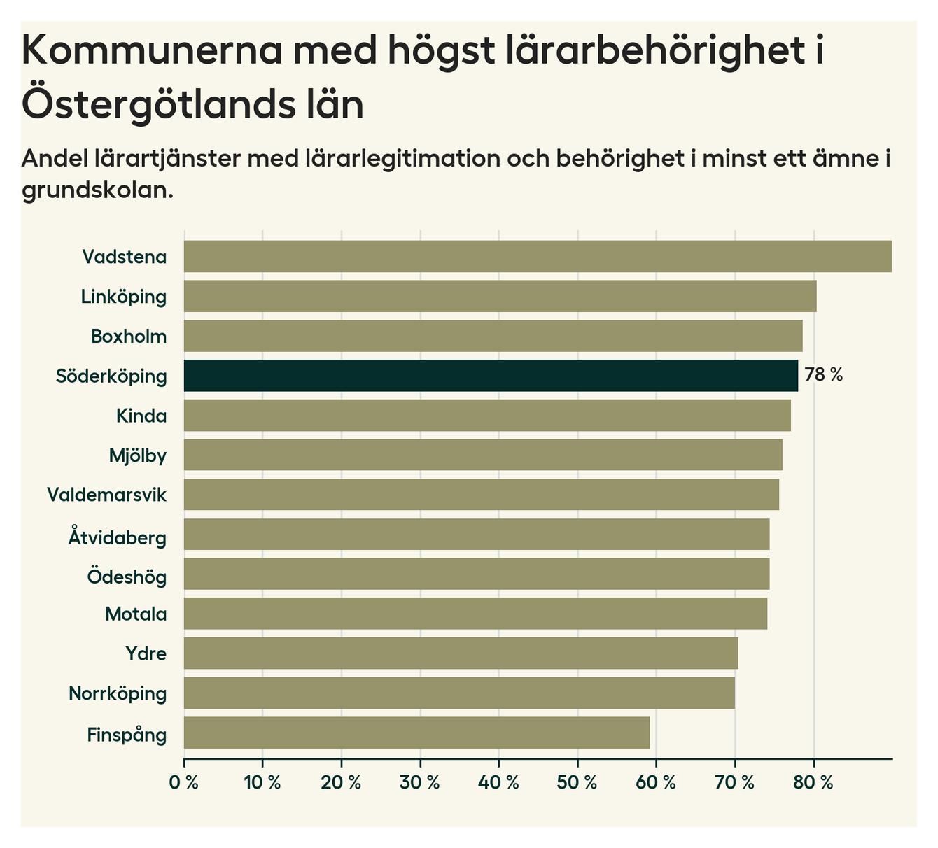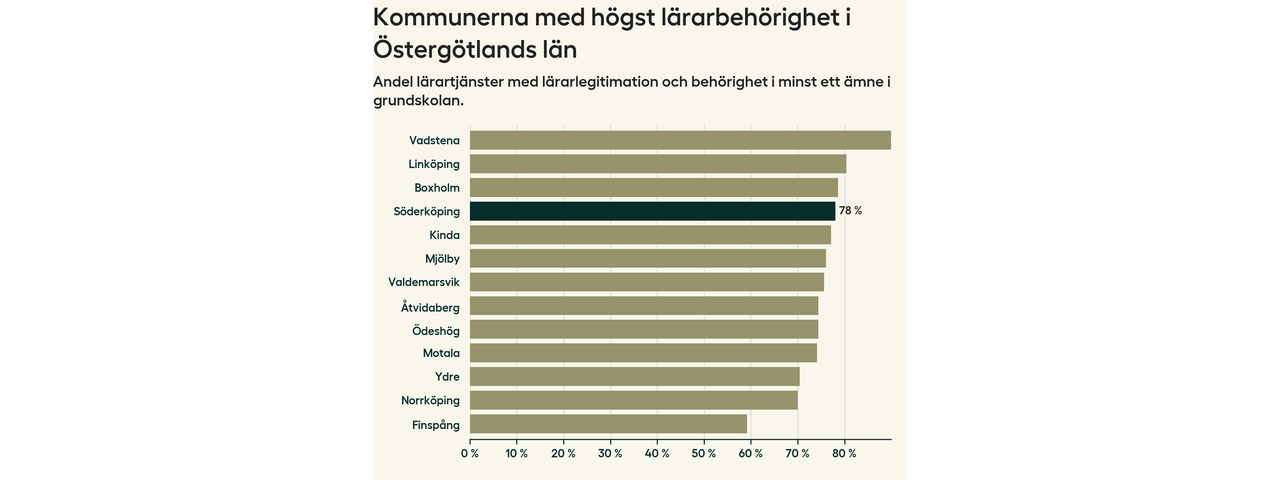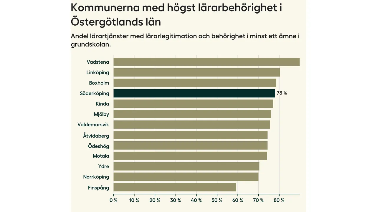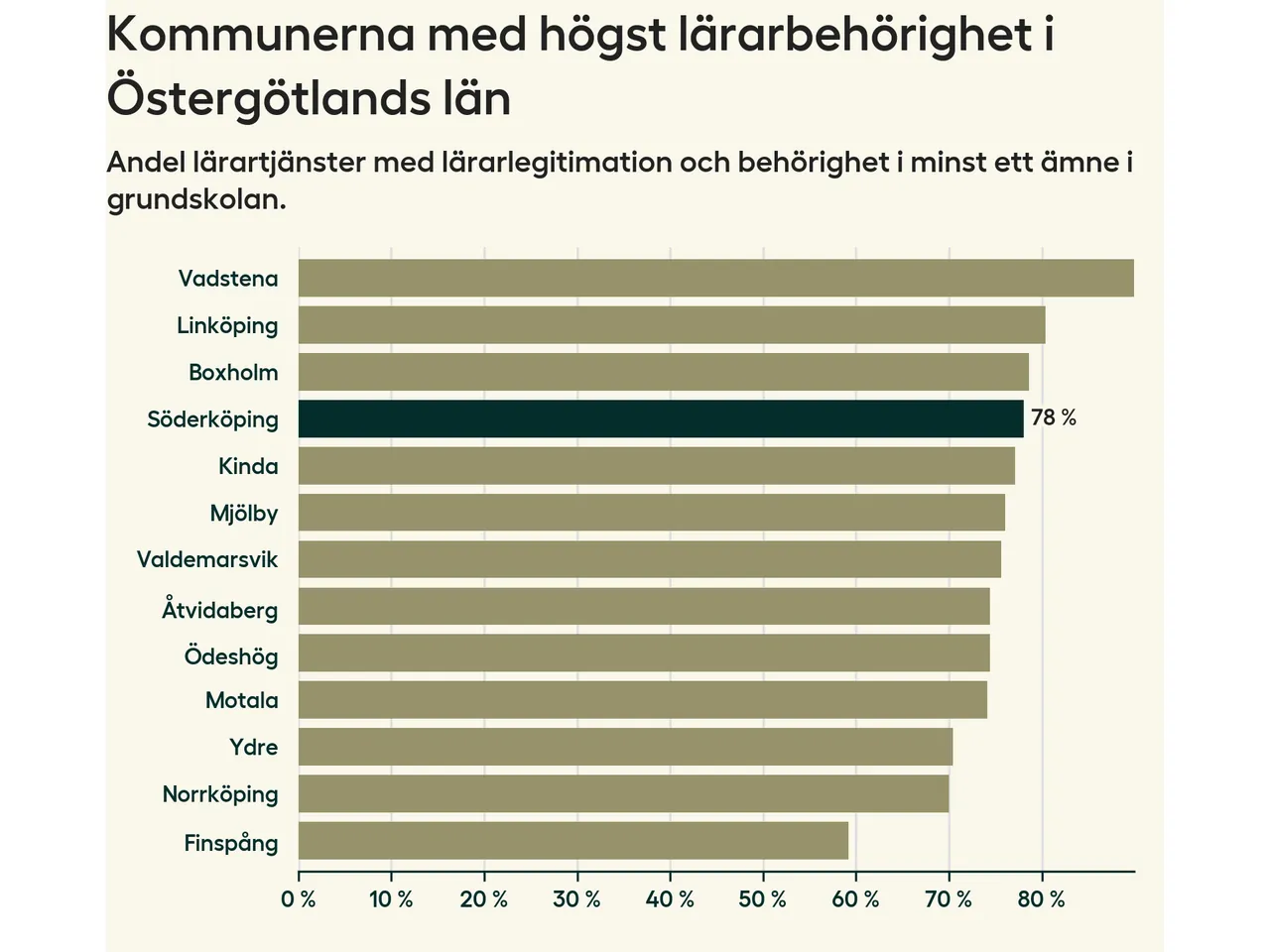 Lärarbehörigheten i Söderköpings kommun ligger kvar på 78 procent, vilket är över snittet för hela landet.