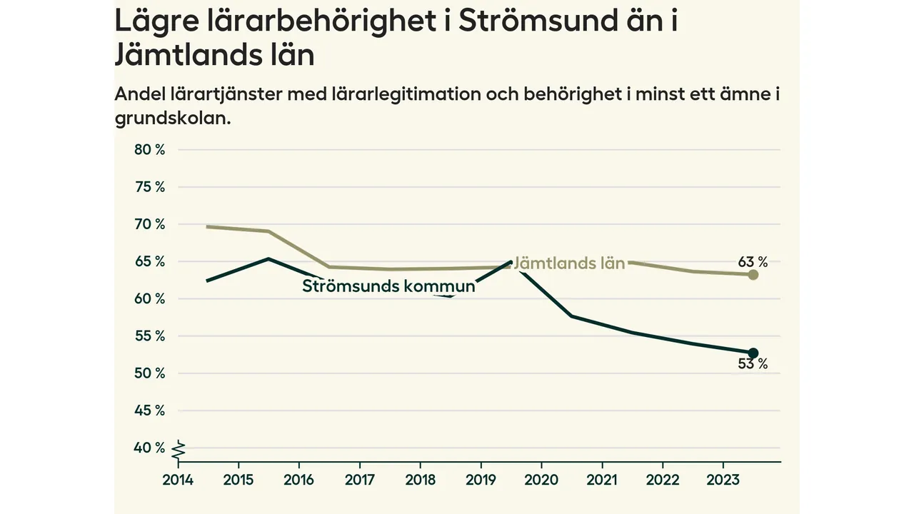 Lärarbehörigheten i Strömsunds kommun sjunker till den lägsta nivån på över nio år.